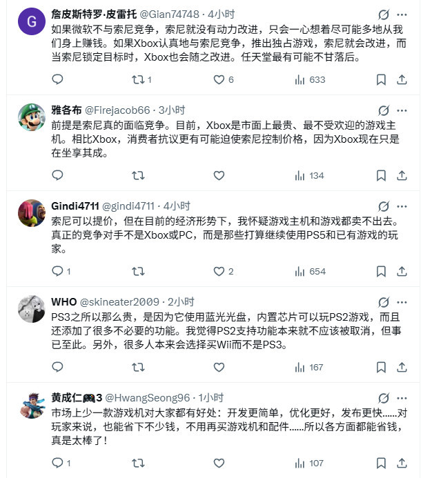 在Xbox官宣新任领导层后,很多玩家不看好这位印度裔女高管,被认为是同样是印度裔微软CEO纳德拉任人唯亲的结果,网络上一大片看衰Xbox的人士。然而,也有观点认为Xbox的衰落对玩家来说并不是一件好事,因为索尼从此在家用主机领域没有了竞争对手,便“无法无天”。
