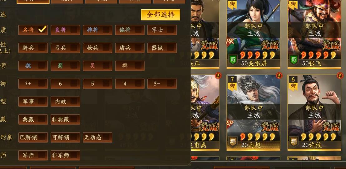 在战区里存在着大量同类队伍时,马超需全速加点以应对内战,但是全速加点的马超仅在内战中占据优势,对阵多数主流队伍时会处于劣势。皇甫嵩在携带军民的情况下需要加速度,因为要防止群弓的朱儁直接免疫军民。如果携带草船加临危的话,则可直接全统率加点。