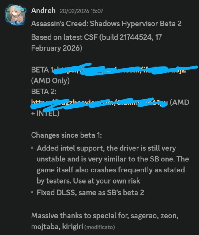 BETA 1版本仅支持AMD处理器。而beta2补丁新增对英特尔处理器的支持。但该驱动程序仍然非常不稳定,与SB版本非常相似。据测试人员反映,游戏本身也经常崩溃。此外,该补丁修复了DLSS,与SB的beta 2版相同。
