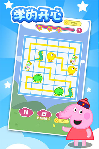 界面呈现随机分布的大写英文字母,孩子需滑动手指依次连接相邻字母,组成有效英文单词或短语。关卡词库覆盖基础词汇、动物名称、颜色表达等高频内容,通过趣味拼词过程自然积累早期英语语感与拼读意识。