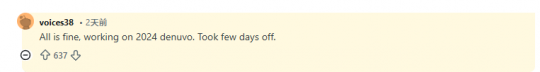 不过,这次似乎虚惊一场:voices38已现身网络,并表示自己一切安好——只是决定稍作休息。目前该黑客正在研究破解2026年版的Denuvo加密保护,但尚未透露下一次破解将在何时发布,以及会是哪款游戏。