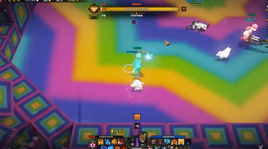 等其站在球上的时候,周身会出现聚光灯效果,该技能结束后将触发全屏落球机制,玩家可站在环形区域的空隙中躲避。当小丑身上再次出现转圈光芒的时候,玩家需要立即脱离内场,等脱离后,BOSS便会发动出大范围的技能,必须要等待技能释放完毕后再上前输出。最后需注意场地中掉落的小丑球,出现后就需要立刻迅速清理,否则会引发范围性爆炸伤害,或者被吸取蓝量而导致无法用技能。