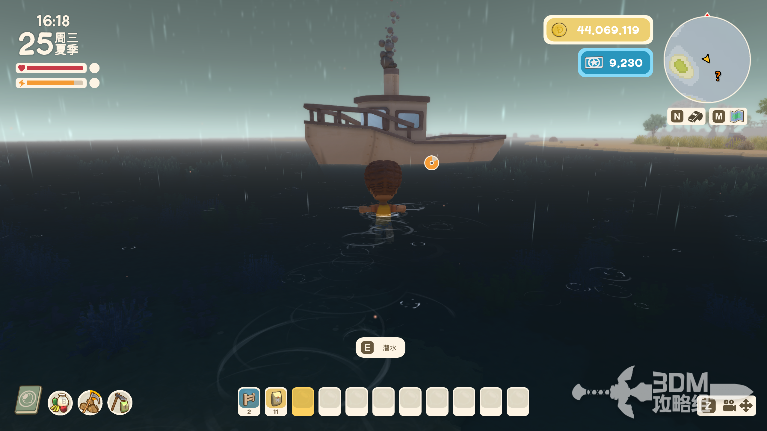 吉米的商店只会出现在下雨的天气,这时候我们打开大地图,看到有问号的地方,就能找到他的船。