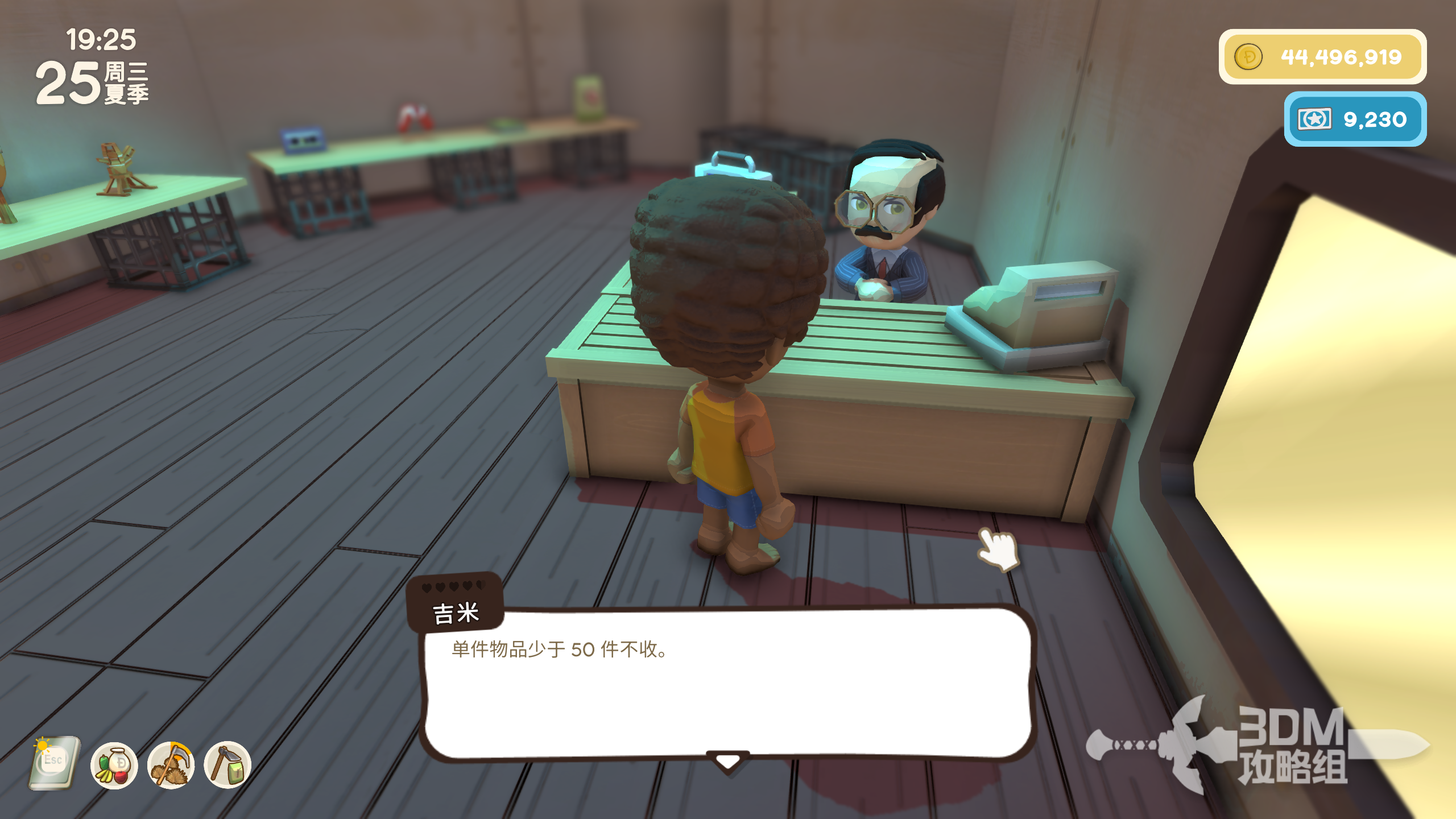 并且吉米还会大价钱收购我们的物品,会比其他地方售卖价格高50%,不过得有50同样物品才能够售卖给他。
