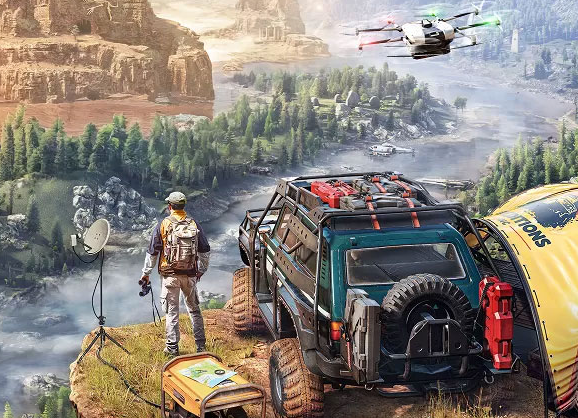 由《雪地奔驰》原班团队打造,本作将核心玩法从物流运输升级为科学考察驱动型开放世界探险。地图规模大幅扩展,涵盖荒漠、高原、干涸河床与风蚀山地,遗迹点位随机生成,动态天气系统可触发沙尘暴、骤降低温、能见度骤减等真实灾害事件。新增无人机侦查模块,支持远程扫描地形、标记潜在路径与风险区域。载具改装系统深度拓展,涵盖轮胎类型(全地形/泥地/雪地)、差速锁配置、引擎功率调校、货箱结构定制等维度,策略性远超单一驾驶操作。