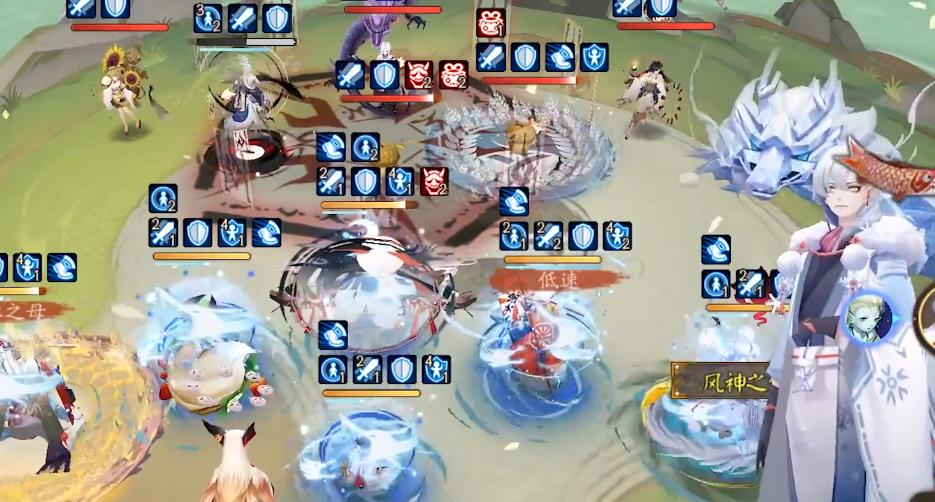 群盾能秒敌、增伤、加抵抗,再次释放可回血。低血内战时能提升生存能力,配合辅助可触发炸盾。遇到复杂情况时,使用风系技能可防彼岸花并保障生存。被克制的主要是控制类式神,如星熊、孟婆、阎魔等,如果是速生爆满暴的一目连,护盾厚且具备回血能力,基本可无伤应对缚姬队,即便将蛇丢出去也能克制。此时可搭配招财、火灵、蚌精速生爆等御魂,如果队伍里缺少共潜单位也可以选择潜速生生爆。