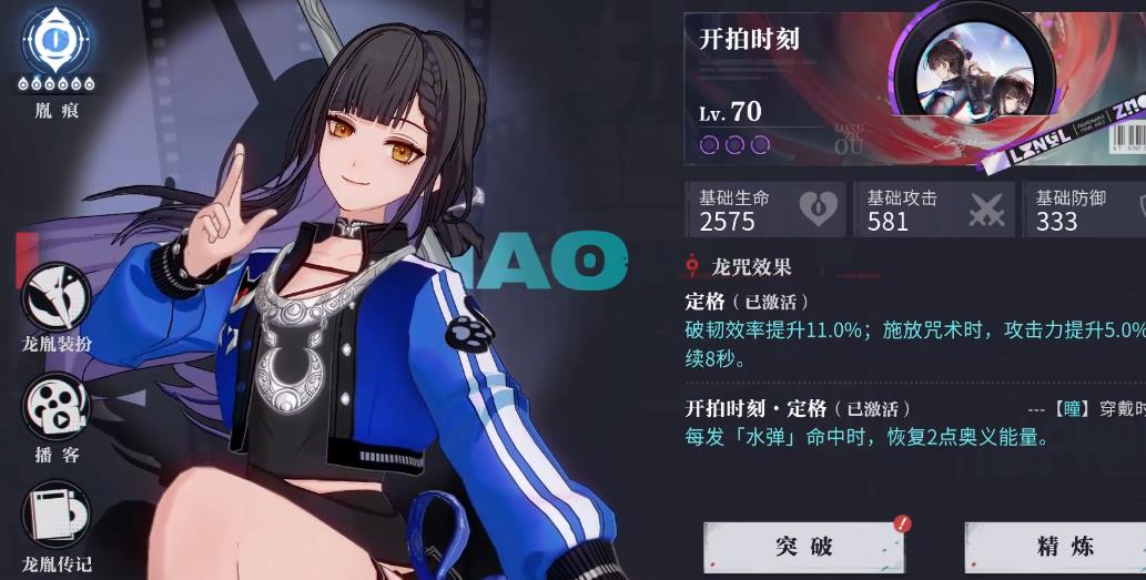 瞳的龙咒能是给自身增加破韧效率和攻击力,如果用于将其放在破韧位,可优先释放咒术以获得攻击力加成。如果将其当做盾辅来使用的话,那么就可以在出场后再使用技能。每发水弹命中可恢复两点充能,最多可触发能量条满后的五发,与破除敌人韧性后的五发,总共十发子弹,恢复能量效果一般。潮品推荐谙练和绒雪,其中谙练就是拿来当做破韧位置来使用的,而绒雪就是当做盾辅位使用,但是瞳不受到防御力加成影响,因此绒雪的二件套效果都无效。
