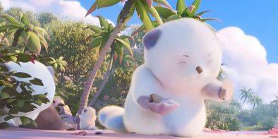 羞羞獭外观辨识度极高:通体呈浅青蓝色绒毛,腹部覆有纯白柔软皮毛,头顶自然生长一片形似荷叶的角质结构。其核心行为模式围绕“高敏感性”展开——遭遇突发声响或视线接触时,会本能使用贝壳或小铲遮挡面部;日常活动高度依赖水域环境,在鲸落浅滩等湿地地形中常以群体形式出没,具备明确的栖息地偏好。