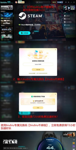 新用户注册后,系统将自动发放24小时全功能免费加速时长;在激活界面输入兑换码【biubiu不掉线】,即可额外获得72小时加速权益。两项叠加,总计可享4天无限制高速下载服务,无需付费、无需绑定支付方式。