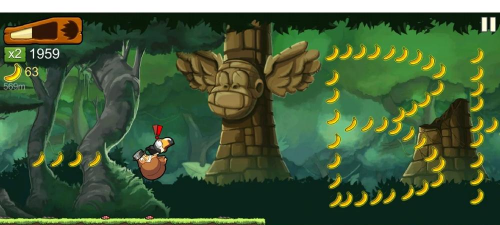 操控着小猴子可以利用摆动的绳索和藤蔓在各个森林场景之中自由的穿梭,将那些香蕉全都收集起来,为自身积攒更多的闯关能量,在抓放绳索的时候要把握住距离和绳索移动的时机,完成任务后可以获得香蕉和双倍的积分。道具和猴子的形象是多种多样的,闯关进行当中,将会拥有很多新的猴子皮肤供玩家解锁。