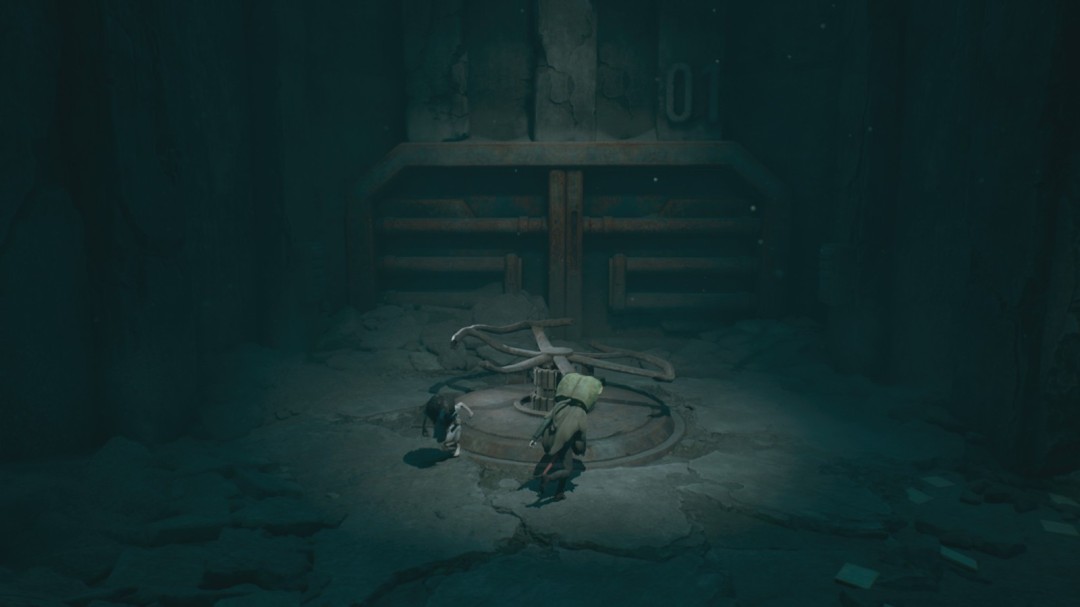 山羊追逐战后下楼梯,朝最下方走,左侧墙上