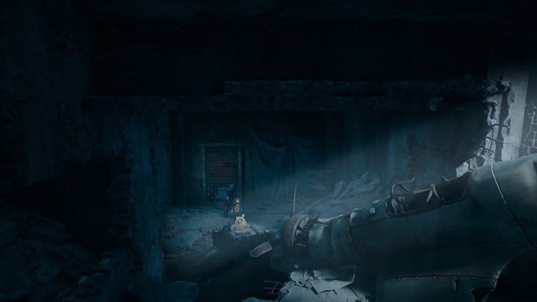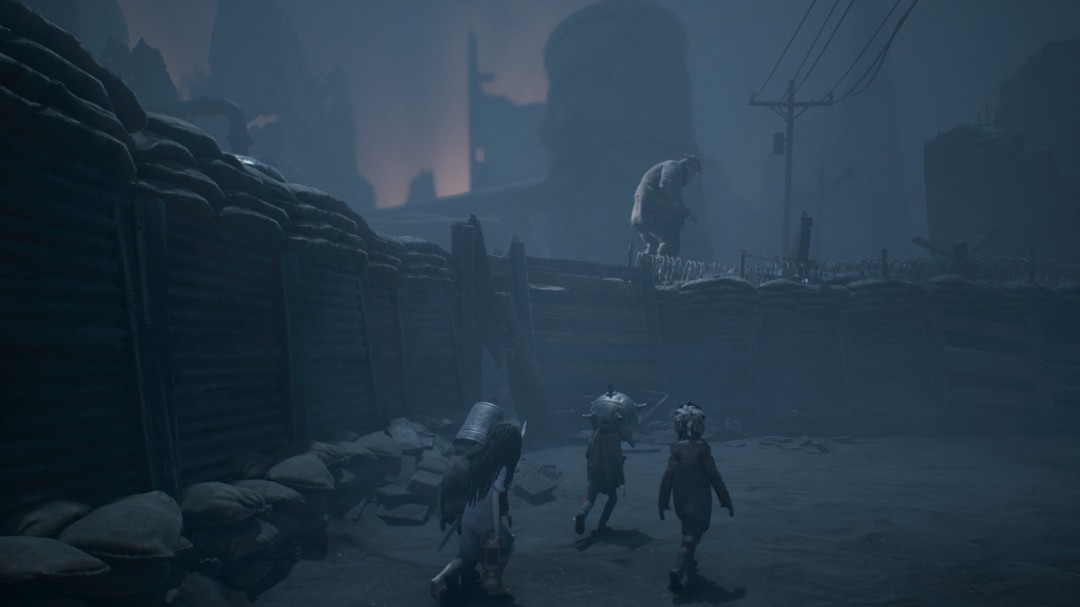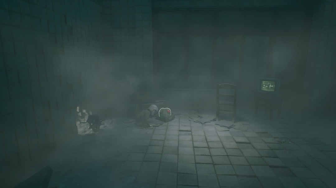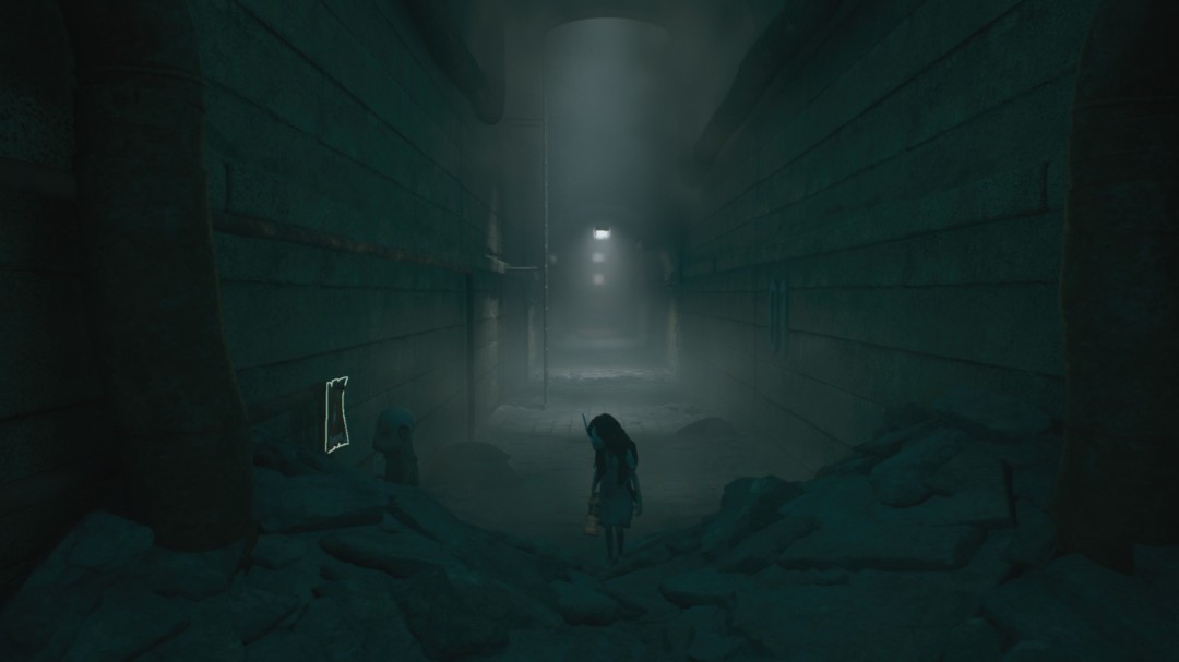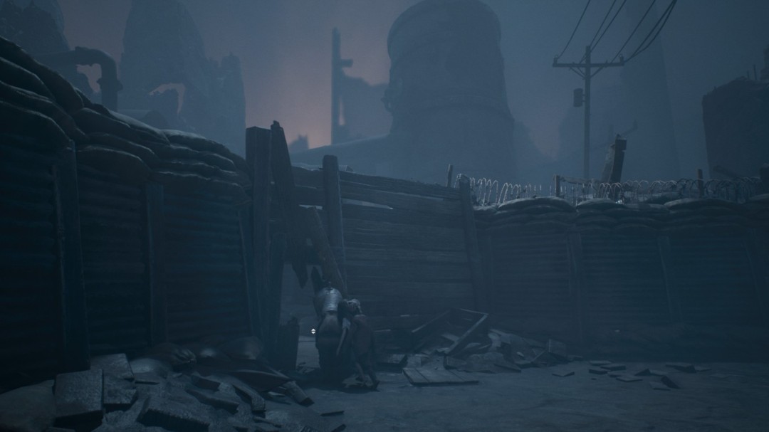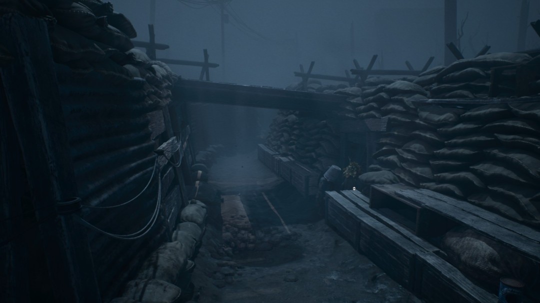 继续前进,经过一处开阔场地,战壕左上方有一个手持手枪的胖子。左边有墙缝可以钻,里面有雕像和面具。这个雕像不用点蜡烛,会自然解锁【成就:为死者祈祷】