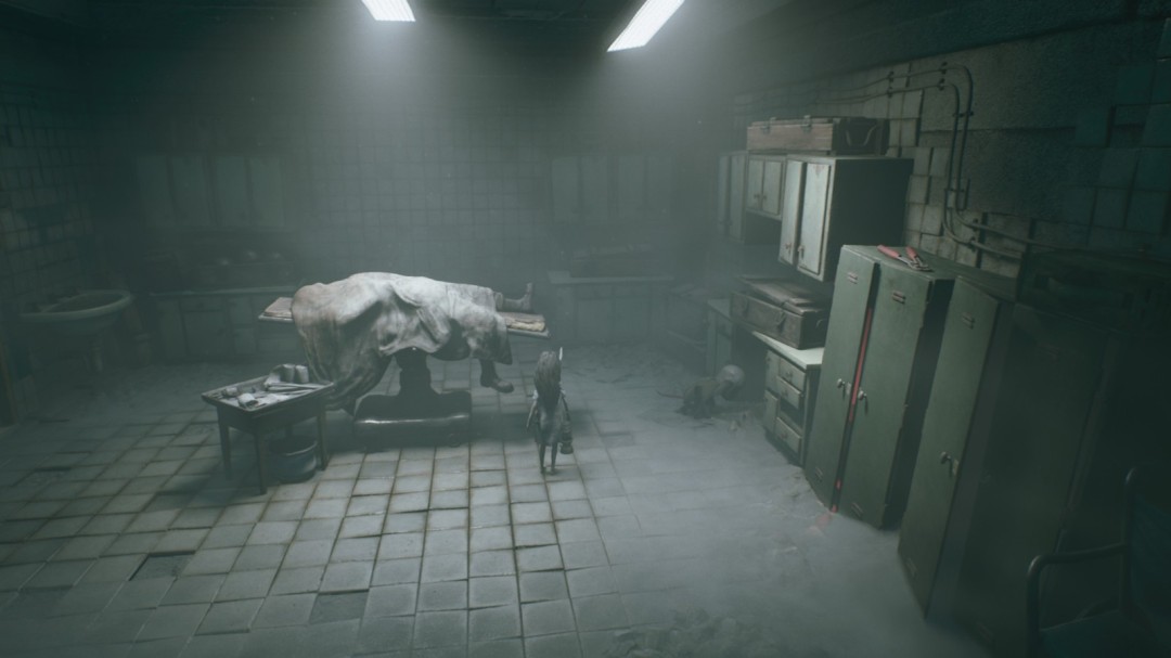 出电梯后,右边房间是手术室,手术室右边桌子下有隐藏通道
