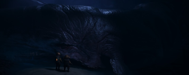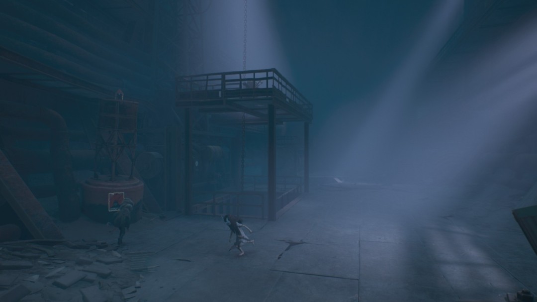 继续推进剧情来到海滩,到最上方看见小怪物(这是从之前推下去的木箱里出来的)