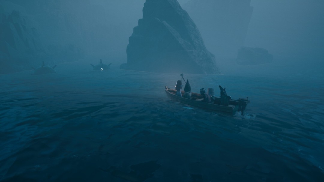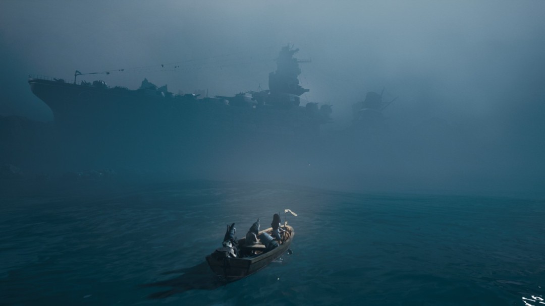 继续推进剧情,越过海怪尸体,可以射击4个鱼雷。看到远方的大船后,向右边一直航行到头,上岸后,在岛屿中央看到面具(中途可以射击1个鱼雷,之后前往大船时,左侧还有2个)