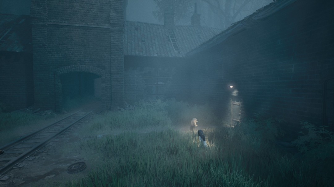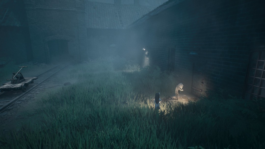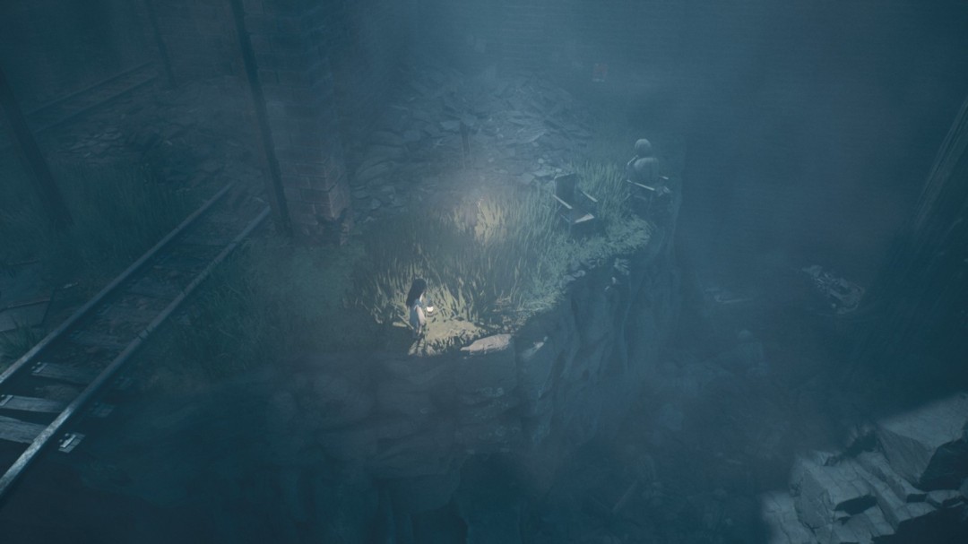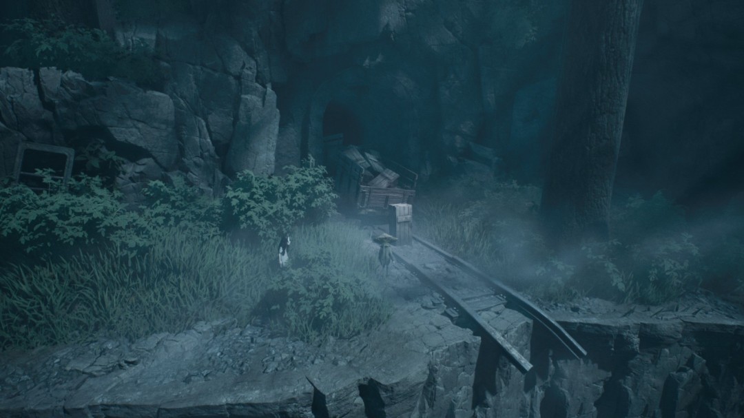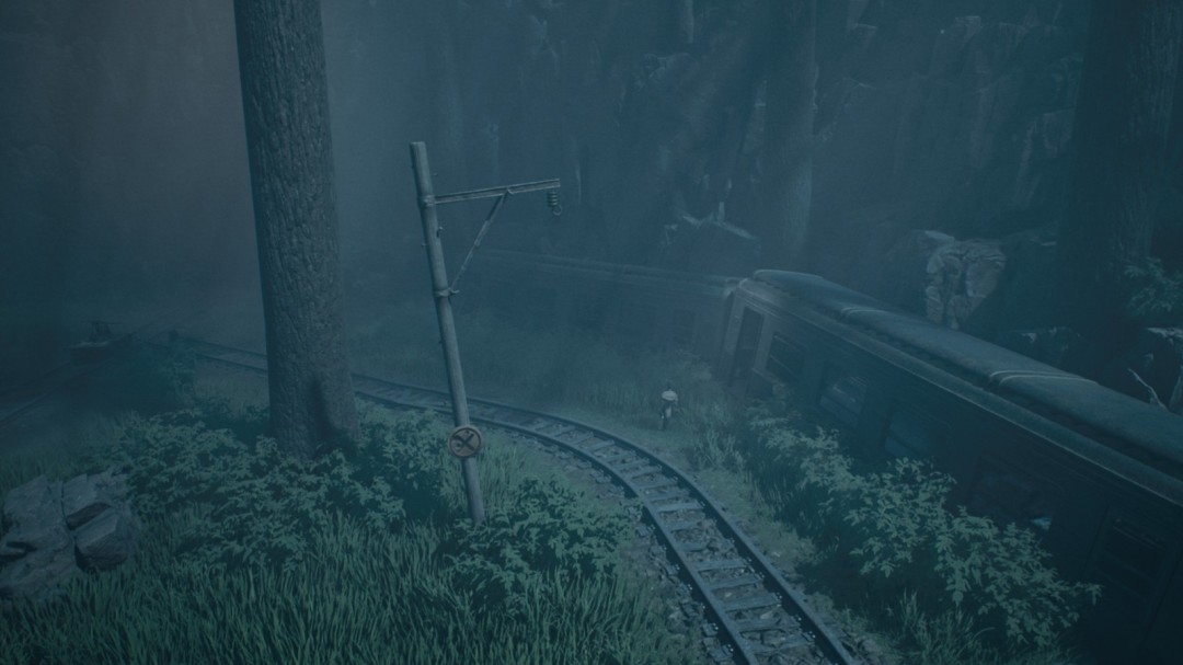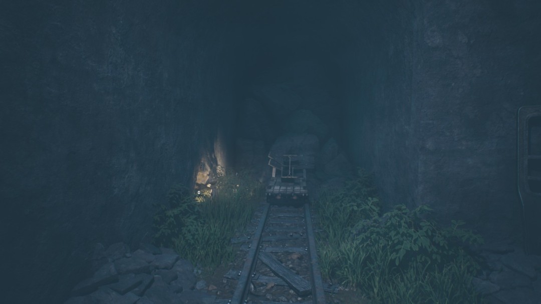 小矿车过桥后,在有铁路岔路的位置下来,右手边穿过火车车厢