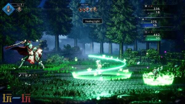 神官劳拉娜的治愈之光”技能一次能恢复300多点HP,是这场持久群体战中最可靠的治疗手段。