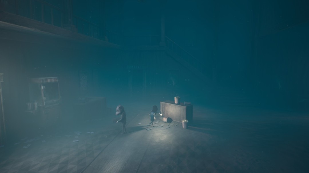进入电影院后,拿起门旁的砖头,砸最左侧的爆米花机