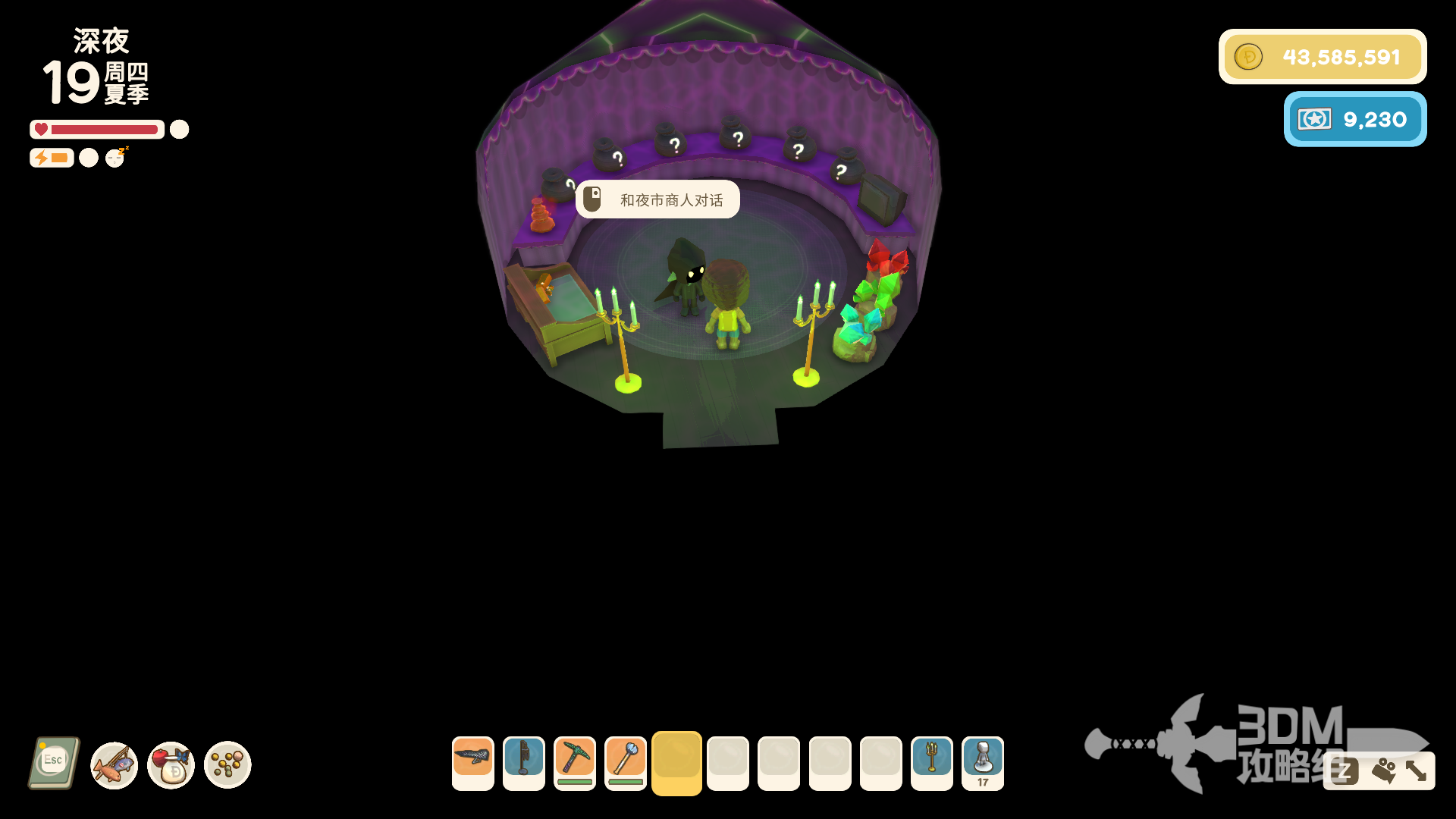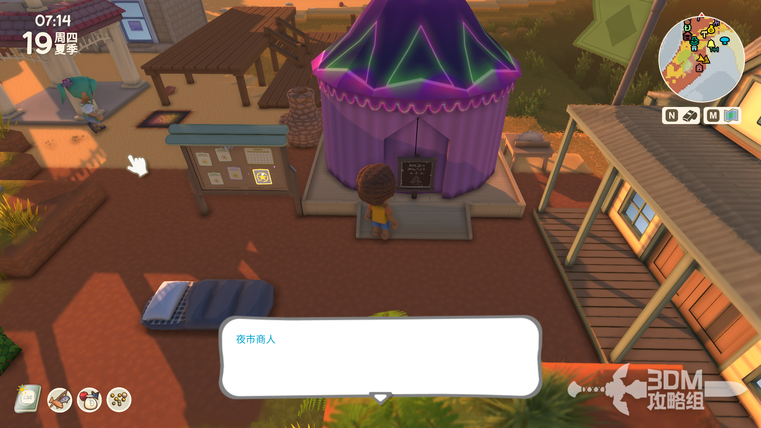 在每个月的19日,在游客帐篷处可以开启夜市,需要时间到达深夜才会开启。