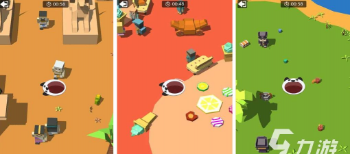 此款游戏促使你置身在小镇里,你可以从小镇里的小石头开始吞噬,变大点就可以吞噬树木乃至建筑物,到时候整个小镇都会沦为你的养料,这个过程是限时的,才考验你的手速。游戏里,还会有其他黑洞的存在,你需要躲避比你大的黑洞,否则即刻死亡,待到你自身壮大,就可以反吞噬其他黑洞,你会彻底了解适者生存、劣者淘汰的法则。