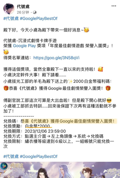 今天的内容中,小编为大家整理出的是一期代号莲兑换码大全。在代号莲这款游戏中,很多小伙伴在刚开始玩的时候,会感觉手中的资源太少了,那么其实这是因为你有一些玩法,因为等级太低的缘故还没有解锁,所以拿到资源的途径也比较少。不过这个问题是完全可以通过使用礼包码来弥补的,如果你也想知道当前游戏内有哪些可使用的礼包码,文章中的内容就能够为你解惑,一起来看看吧。