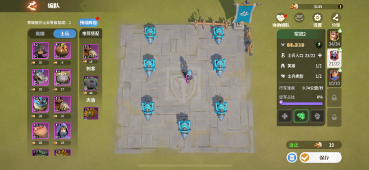 在英雄和士兵都具备了足够的战斗力后,玩家接下来要思考的就是队伍搭配了。一支队伍由英雄和士兵组成,英雄具有不同的功能以及技能,而士兵也有不同的定位,玩家需要根据需求组建自己的队伍。