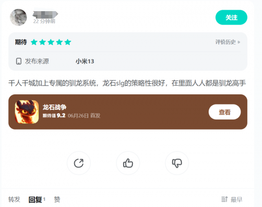 在策略深度和玩法表现上,玩家也有话说。策略深度高:游戏贯穿丰富策略内容,从城建布局、兵种养成到联盟外交、战场决断,每个决策都充满变数。玩家可自由布置城池,城墙、箭塔等都是战术选择,还能利用兵种克制关系,在立体战场中灵活作战,实现以弱胜强。”玩家能充分感受游戏带来的策略新体验,也能享受这样的策略博弈,这正是《龙石战争》为SLG带来的策略进步。