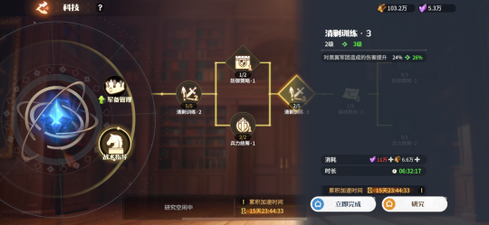 而在前期发育过程中,大家可能遇到打不过黑潮,任务卡关的情况。这里的解决办法就是在【战争学院】的研究”中进行科技升级,通过增加对黑翼军团的伤害、提升人口上限等方式来有效提升强度,从而解决前期队伍强度不足的窘境。