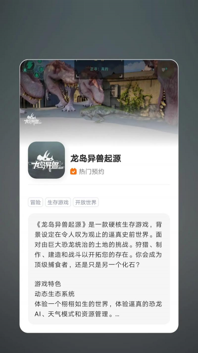龙岛异兽起源怎么玩?玩家在选择体验龙岛异兽起源游戏的时候,将会变成了一头恐龙,在危机四伏的侏罗纪时代,需要找到自己的生存道路,并且在所有的细节当中,要以生存作为核心所在,此时玩家已经成为了恐龙。他们在这个原始的土地上作为强者需要讲究一定的攻略性,下面就针对这方面的内容做相关的介绍。