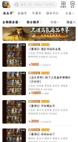 《谋定天下》安卓/iOS全渠道、各服区(如区、应用宝区、九游区)账号100%覆盖,且同步上架武将图鉴、月卡礼包、代练服务等周边商品。