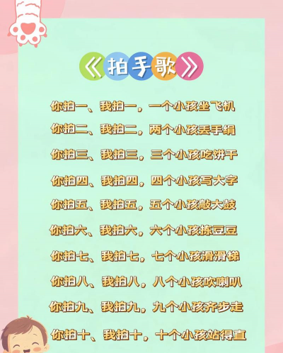 4、玩法可以自由变化,创意无限。这个游戏的魅力,还在于它的可变性,你可以改变拍手的规则,比如,改成拍肩膀,或者拍桌子,甚至,可以增加难度,比如,唱歌的人随机改变拍手字数,或者,听的人要做相反的动作,选择的歌曲也可以多变,从儿歌到流行曲,都能玩,这样,游戏就不会玩腻,总能保持新鲜感,发挥你的创意,还能创造出专属的家庭游戏版本呢。