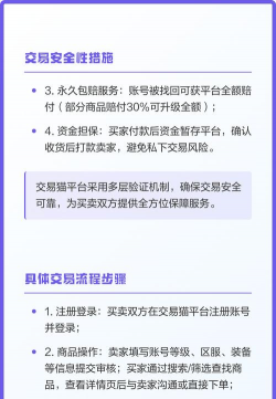 3、第三方平台交易要选正规渠道然后,很多人也会通过,一些第三方游戏交易平台,这些平台,像是一个大型集市,卖家多,买家也多,选择空间很大,但是,一定要选择,那些信誉好、有保障的大平台,交易时,要使用平台提供的,中介担保服务,不要私下,直接转账给卖家,收到物品确认无误后,再通知平台放款,这样,能最大程度保护,买卖双方的利益,切记,不要轻信,价格低得离谱的商品,那很可能是个陷阱。