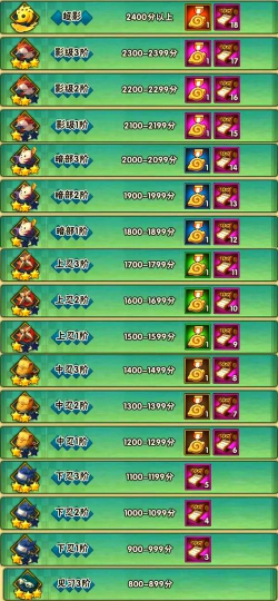 1、赛季奖励有哪些?赛季奖励非常丰富,让人眼花缭乱。有大量的金币,金币是游戏硬通货,可以买忍者,也可以买材料,有高级招募券,能抽强力忍者,还有限定称号和头像框,彰显赛季荣誉,还有稀有材料,比如保护符和勾玉,能强化装备和通灵兽,高段位还有专属忍者碎片,甚至是整卡,奖励层层递进,段位越高,奖励越好,所以,努力冲分是关键。