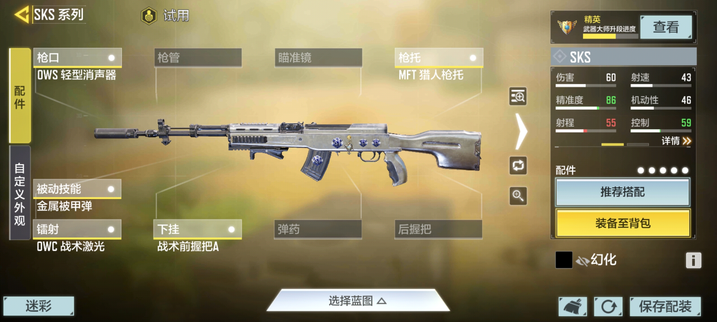 OWC激光(没啥好说的),架点可以换弹夹,镜子