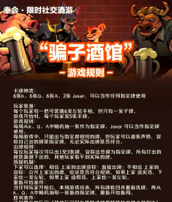 1、游戏准备与角色分配你需要召集一些朋友,建议5到8个人一起玩,人太少会不够热闹,人太多又容易混乱,游戏会提供角色卡,包括“酒馆老板”、“秘密持有者”和“普通客人”等,每个角色都有独特的任务和秘密,抽到角色卡后,一定要仔细阅读,记住你的身份和目标,这是游戏的基础。