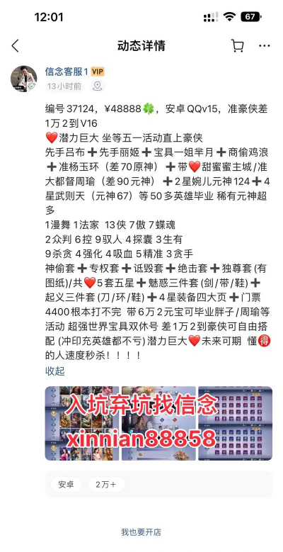 账号价值是核心,它直接决定价格,很多人卖号时,其实并不清楚,自己的号到底值多少钱,于是,要么定价过高,无人问津,要么定价过低,白白吃亏。