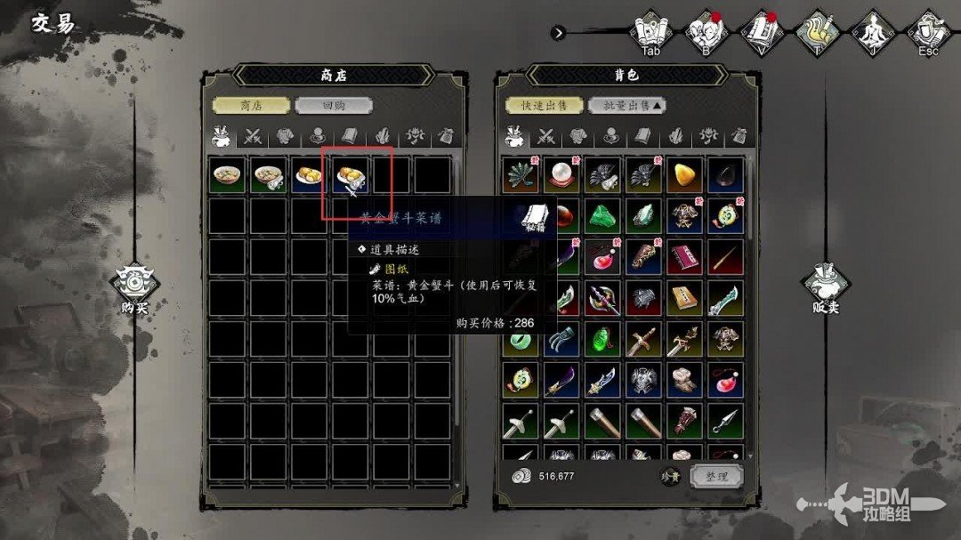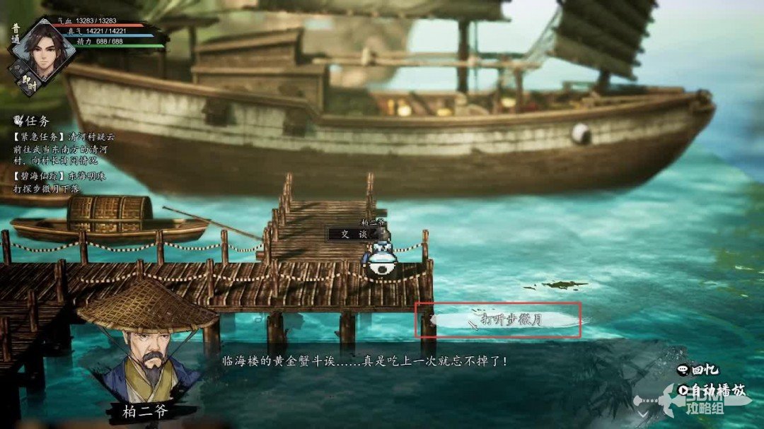 然后去到最右边的渡口打听,在掌柜那里购买黄金蟹斗就可以知道下一个线索。