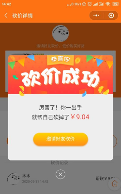 不过,砍价有规则限制,比如,每人只能帮砍一次,或者,砍价金额随机递减,前期砍得多,后期可能只减几分,所以,想成功需要大量好友,并且,要在规定时间内完成,否则,活动失效价格恢复。