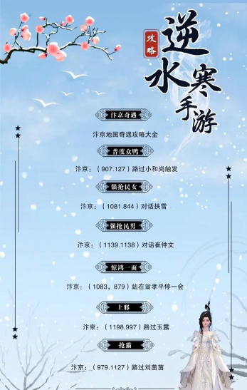 本次要为玩家们带来的是逆水寒奇遇大全攻略。在这个游戏里面是有着很多的奇遇可以让玩家们触发的。通过完成这些奇遇是可以让玩家们领取到很多的奖励的,如果玩家们有需要的话,可以通过小编的这篇攻略去了解一下。