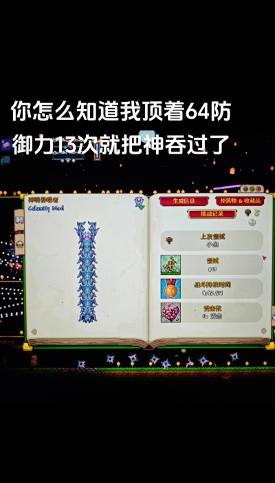 所以,如果你在找,拥有天顶剑的游戏,那就是《泰拉瑞亚》,快去挑战吧,收集材料,合成神兵,体验一把,天下无敌的感觉。
