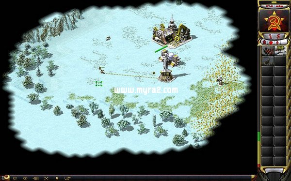 2、选中兵营,用shift键将其加入1号部队。(此时,选中的单位有兵营和一条小狗)