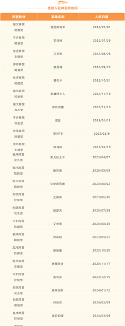 以下是这个游戏里面的历史英雄上线时间了,大家可以来了解一下: