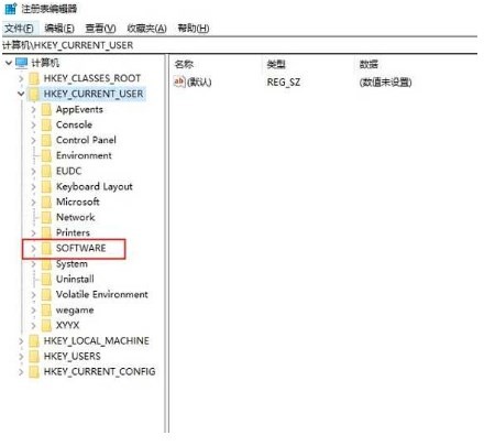 win+r打开命令输入框,输入regedit打开注册表单,找到HKEY_CURRENT_USER->SOFTWARE,