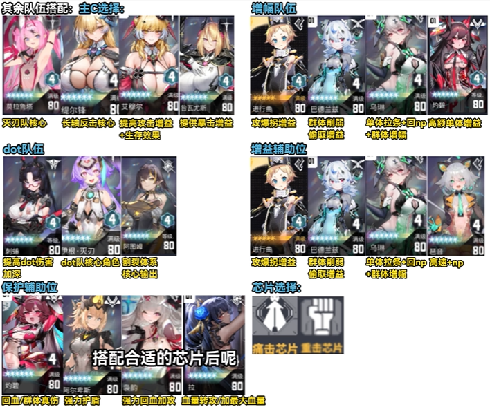2、队伍定位:增幅型输出队,兼顾伤害与生存,战力适配42812+,可覆盖主线、困难等多数场景。