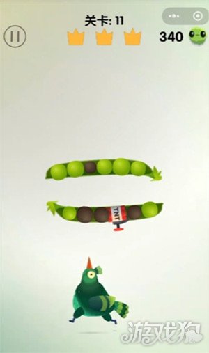 1、和之前一样开始的豌豆荚是横着放置,玩家可以先根据转动方向将左边,边边的青豆啄掉