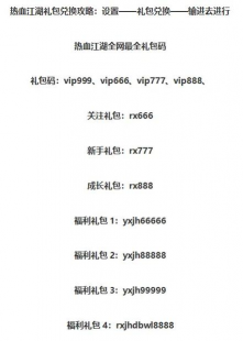 关于热血江湖兑换码的全部内容已经给玩家们介绍完毕了,大家快去进行奖励的兑换吧。接下来如果小编卡卡还收集到了其他的福利,会继续在分享哦。欢迎大家来关注这里。