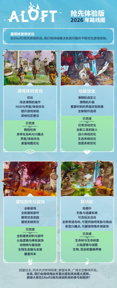 Astrolabe Interactive工作室开发,收获特别好评的合作沙盒生存类游戏《浮空岛》迎来抢先体验一周年,官方发布了祝贺以及公布了2026开发路线图,多项新内容登场,一起来了解下。