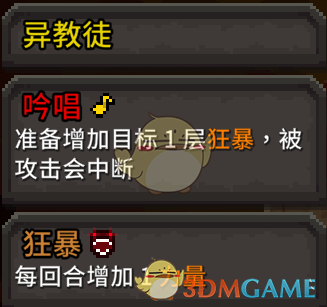《斗技场的阿利娜》中不同的小怪释放技能的效果也不一样,异教徒是游戏中最基础的增益类buff的敌人,而且异教徒吟唱技能会增加狂暴的效果,伤害也会随着战斗的升级而增加,属于伤害中等类的小怪。