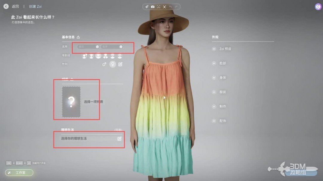 登录界面开始游戏的时候就可以创建自己的·zoi,一个zoi必须有姓名,设置好理想人生还有特质才能创建。