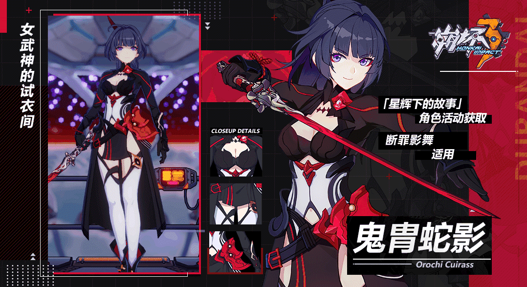 在4.4版本期间,舰长积极参与角色主题活动「星辉下的故事」,可获取活动道具「南十字星」,兑换增幅装甲「断罪影舞」适用的4★服装「鬼胄蛇影」!